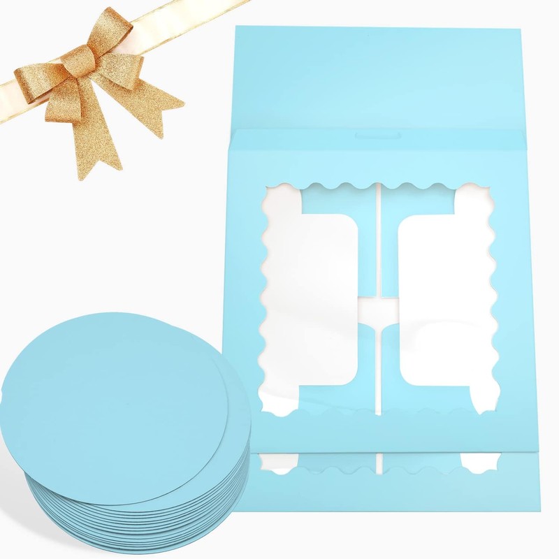 Bakepacker Bakepacker 36pcs 10x10x5 Inches Light Blue Cake Boxes with Window 18-Packs, 10 Inch Bakery Boxes (18 Cake Boxes +18 Cake Boards Included)