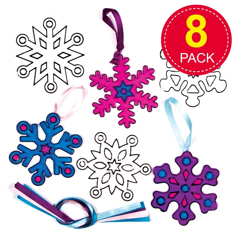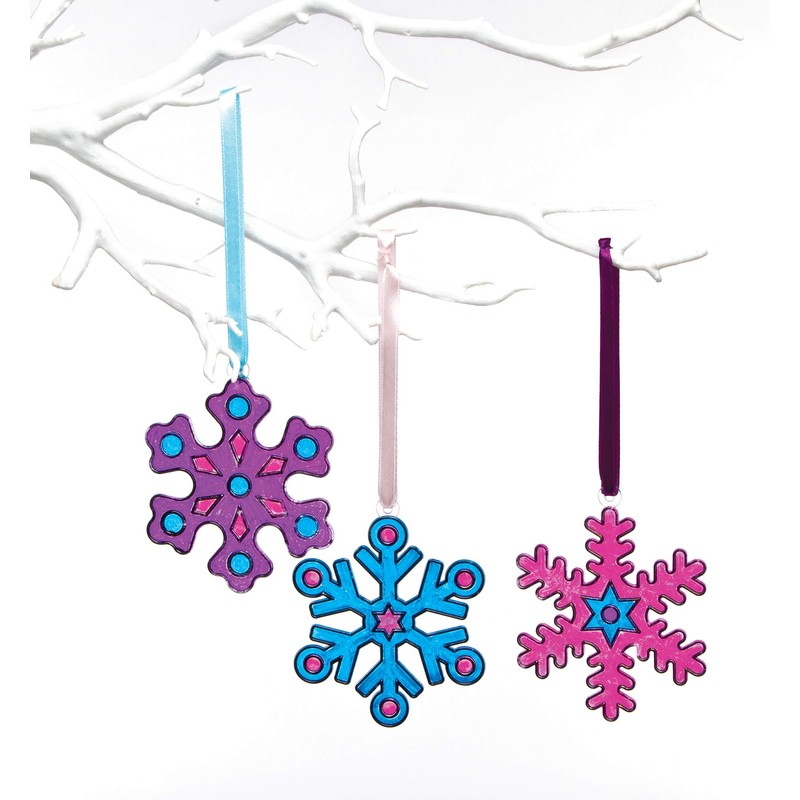 - Hanging Suncatchers: Kids will love decorating their own snowflake suncatcher. Includes ribbon for hanging and embellishment.