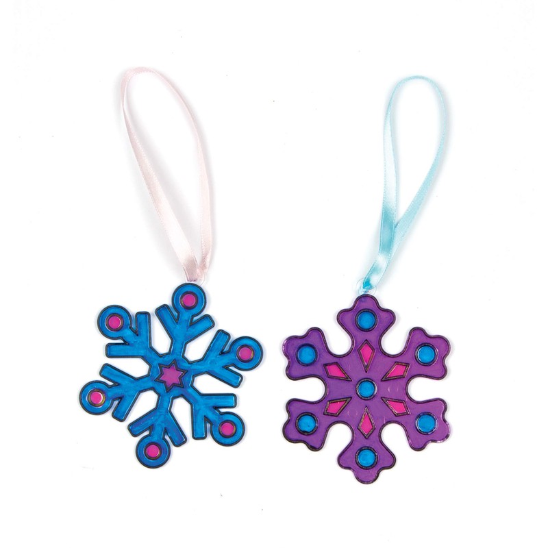 - Make, Create, and Customise: Stained-glass effect acrylic snowflake decorations are fun for kids to decorate with bright coloured markers, paint and fine-tipped pens.