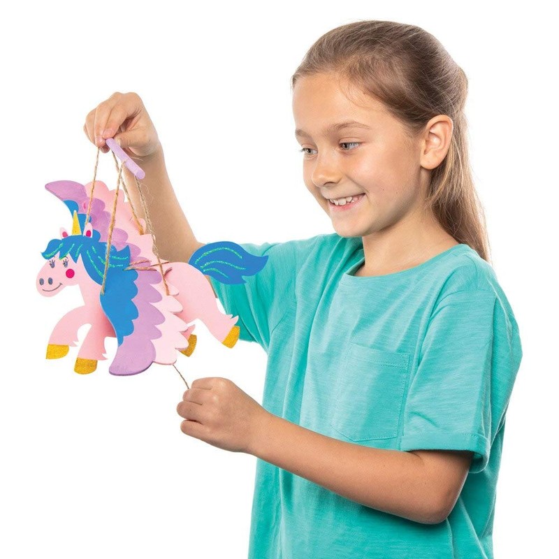 - Each craft kit contains a wooden unicorn stencil, wooden wings, jute string and a wooden stick
