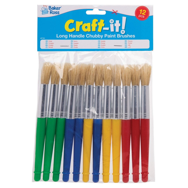 Baker Ross AT791 Jumbo Chubby Paint Brushes - Pack of 12, For Kids Painting Supplies and Arts and Crafts Projects