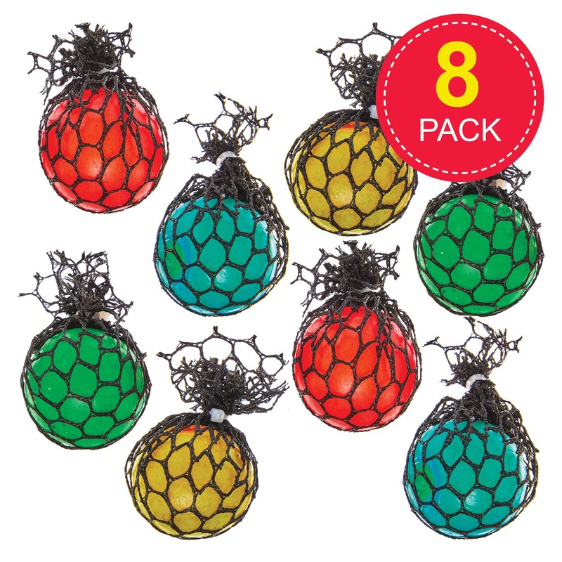 Baker Ross FN140 Mini Mesh Stress Balls - Pack of 8, Rubber Toys, Jelly Toys for Kids, Party Bag Fillers