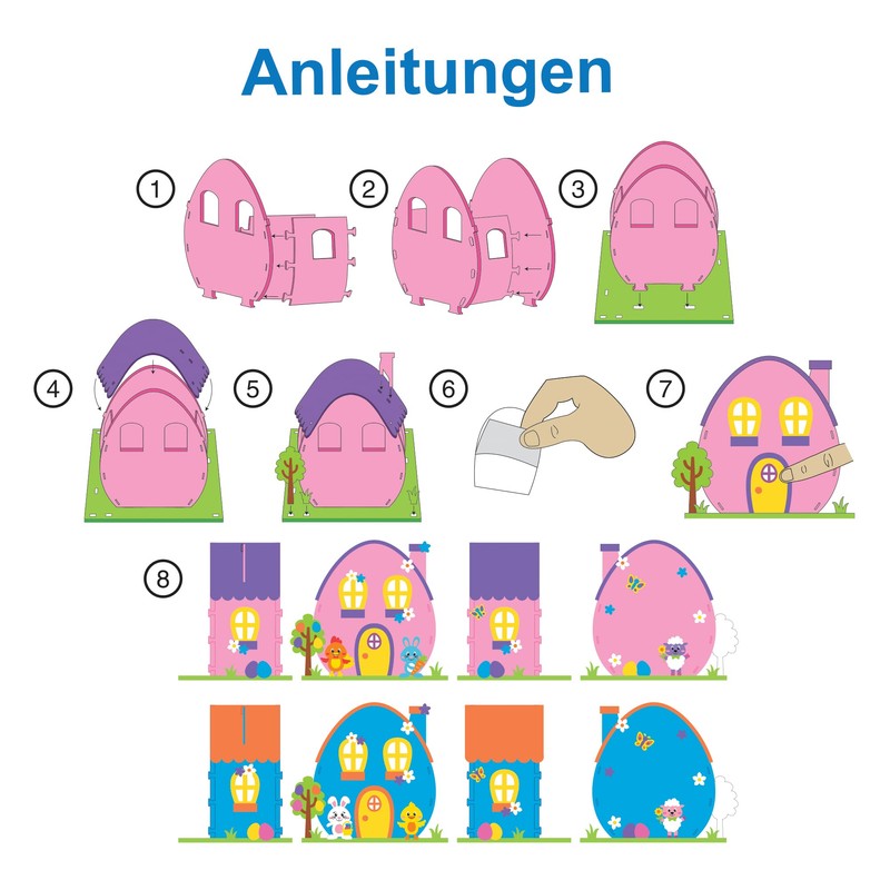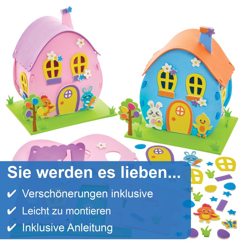 - EASTER DECORATIONS These complete packages contain everything you need to make colourful Easter houses, including self-adhesive windows, doors and Easter bunnies.