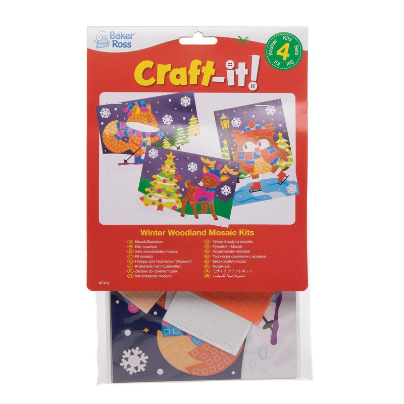 Baker Ross Winter Forest Friends Mosaic Craft Sets (Pack of 4) - Christmas Art and Crafts