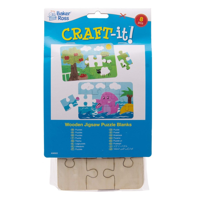 Baker Ross Wooden Puzzles (Pack of 8) - Blank Puzzle Pieces for Kids to Decorate