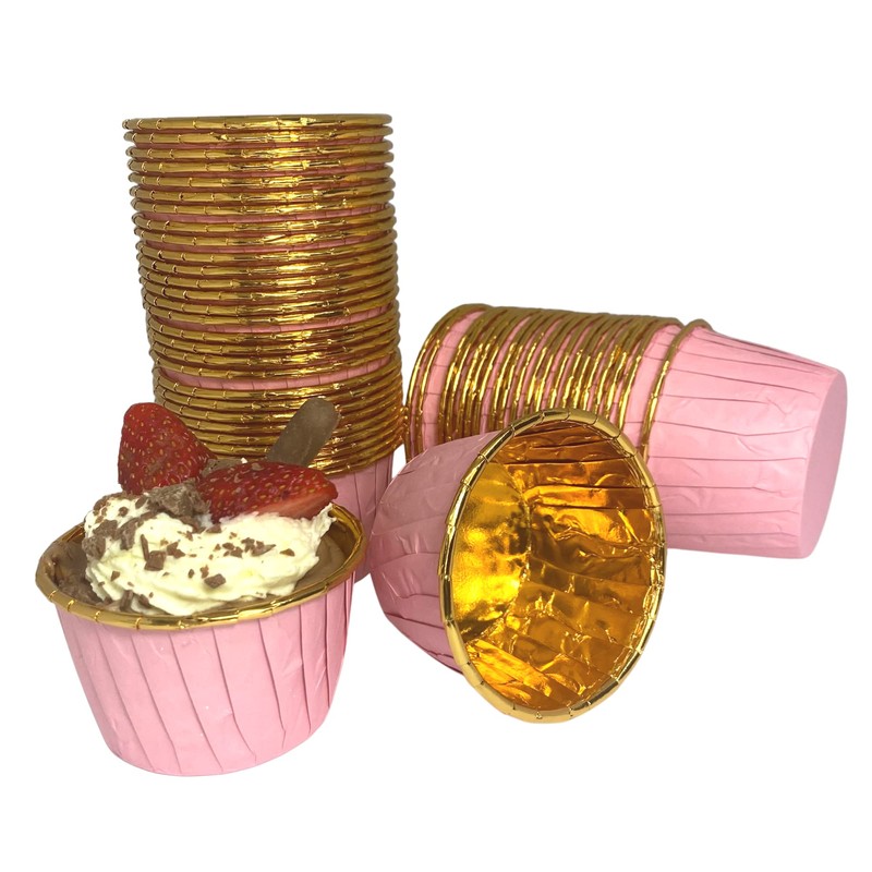 Baking Cup Liners Pink– 100pcs for Cupcakes Muffins Desserts - Gold Foil Lined Wrapper Patty Pan Cases for Parties and Birthdays (Pink)