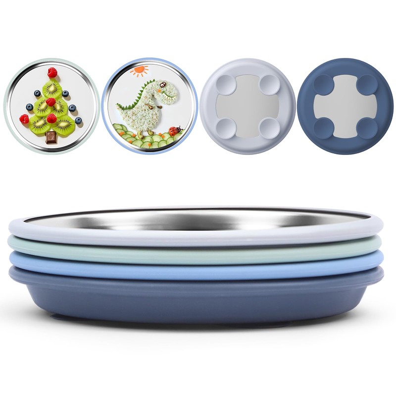 - Innovative Design: This baby plate with suction combines durable 304 stainless steel with a silicone suction base featuring 4 strong, non-slip suction cups. Keeps plates in place on highchair trays or tables, helping your child self-feed and minimizing mealtime mess. Say goodbye to flipped toddler plates and hello to free hands for mom!