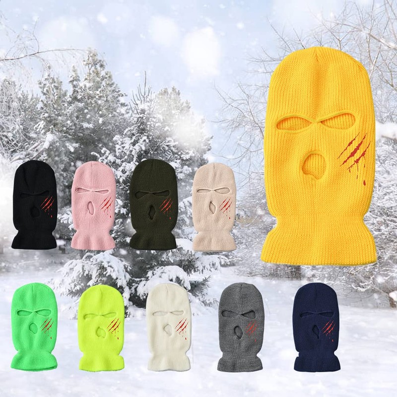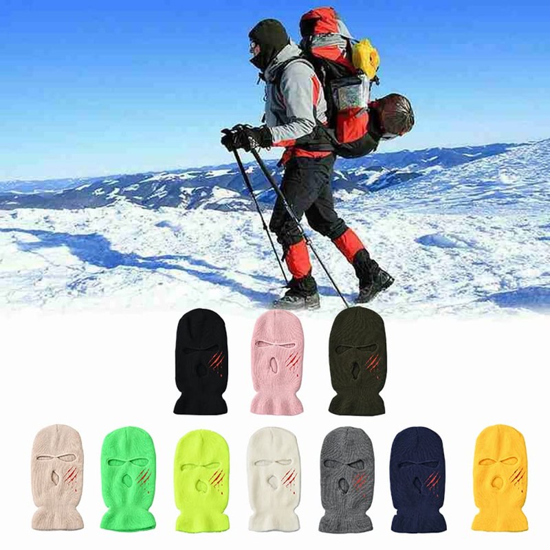 Balaclava 3-Hole Balaclava Ski Mask Knitted Face Hood Cold Weather Windproof Breathable Face Cover Ski Knitted Balaclava for Cycling Running