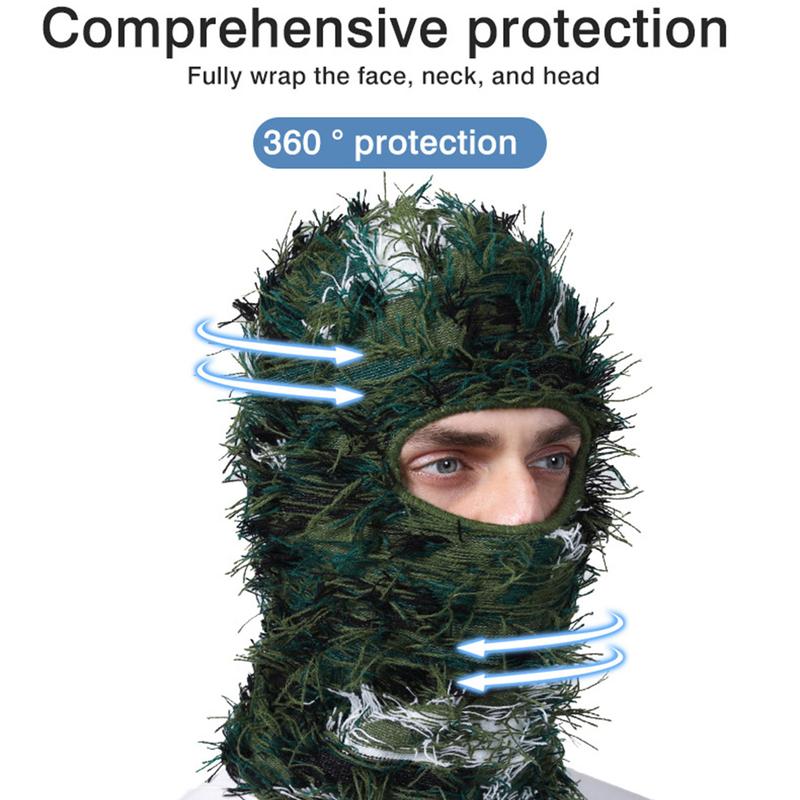 Balaclava Distressed Knitted Ski Mask, Women Men Full Face Mask,for Winter Warm Neck Protection Headwear Hat - Color: Camouflage Green