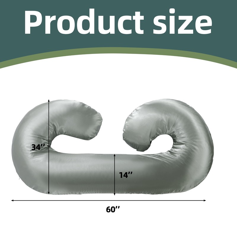 BALAPET Silky Satin Pregnancy Pillow Cover (ONLY Pillowcase), C Shaped Large Luxurious Smooth Maternity Pillow Cover with Hidden Zip, Soft & Breathable Pillow Protector for Side Sleeper, Dark Grey