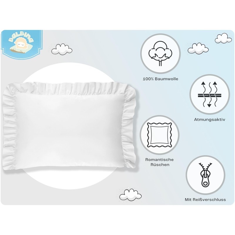 Balbina Pillowcase 40 x 60 cm for Children & Babies, Cotton Pillowcase for Children's Room, Pram or Cot, Cotton Pillowcase with Ruffle & Zip, White