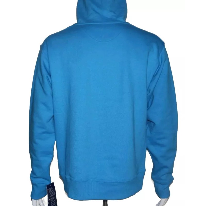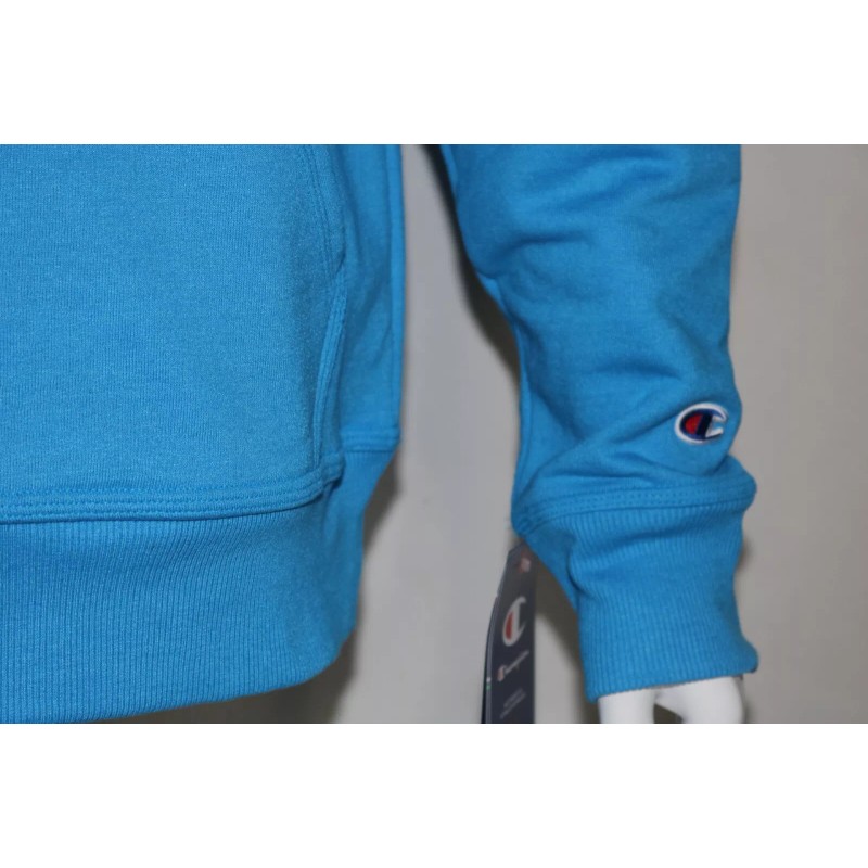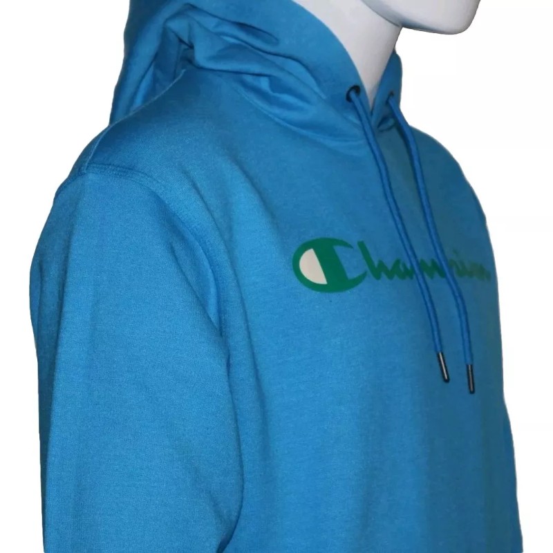 Champion Men's Powerblend Fleece Pullover Hoodie, Script Logo, Balboa Blue - M.