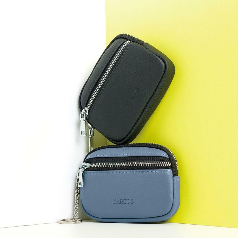 Balcos Shrink Leather, Cowhide Leather Coin Case with Key Ring, Coin Purse, Keys, Bill Holder, Mini Wallet, Men's, Women's, Zipper Closure, Black