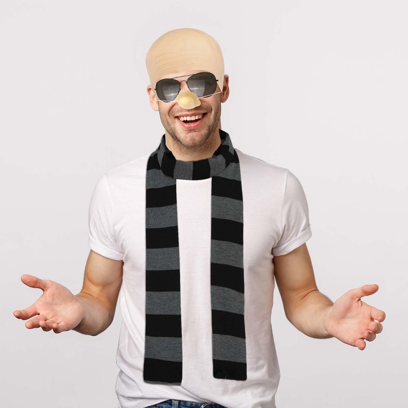 Bald Cap Movie Fancy Dress World Book Day Costumes Wbd Fancy Dress For Kids Adults Bald Cap And Striped Scarf Long Nose And Sunglasses Book Week Storybook Character Outfit Kit,Famous Costume for Men
