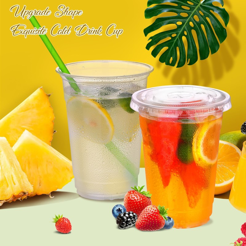 - High Quality: Our disposable plastic cups and plastic cup covers are made of thickened PET plastic. So it is not easy to deform and break. You don't have to worry about any accidents during transportation. Say goodbye to flimsy cold drink plastic cups that easily collapse and hello to our sturdier alternative that ensures your beverages stay intact.