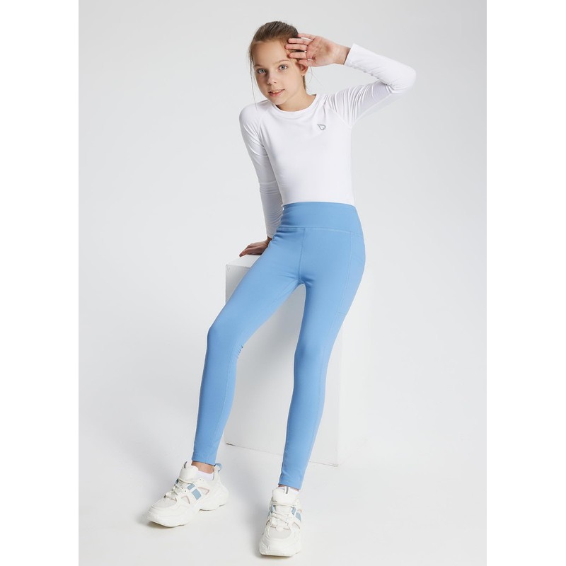baleaf Girls' Fleece Lined Leggings Youth Compression Pants Kids Athletic Yoga School Warm Tights with Pockets Light Blue S