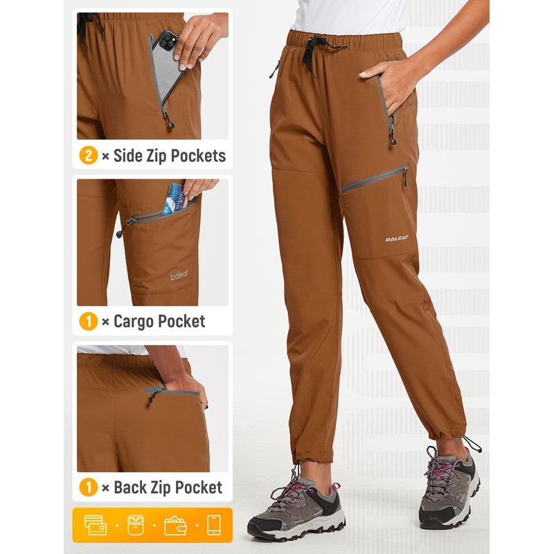 baleaf Women's Hiking Pants Quick Dry Water Resistant Lightweight Joggers Pant for All Seasons Elastic Waist Caramel Size M