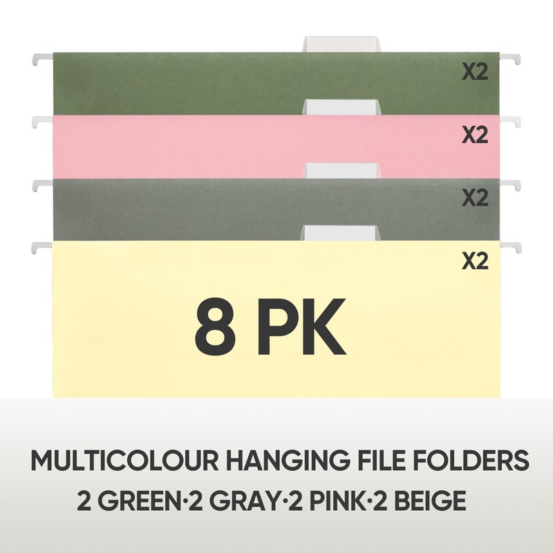 • Multicolor: Available in a multicolor set with four vibrant colors per pack: green, gray, pink, and beige; These hanging files can be compatible with the hanging file organizer, such as file box and file cabinet