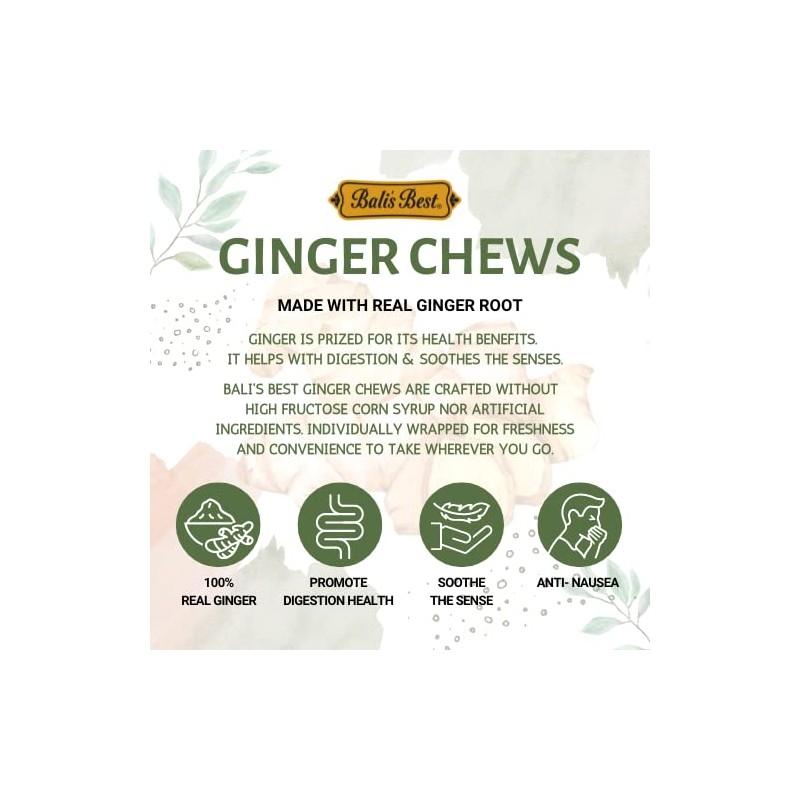 - Bali’s Best Turmeric Ginger Chews are individually wrapped for an easy and tasty way to enjoy the health-promoting benefits of ginger on the go.