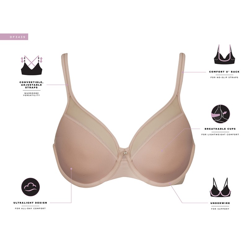 - ULTRA-LIGHT SUPPORT - Ultra-light underwire bra for natural support without the bulk.