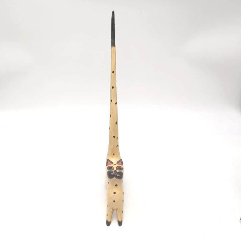 Vintage Bali Wood Long Tail Cat 15" x 6" Hand Carved & Painted Figurine #1. New