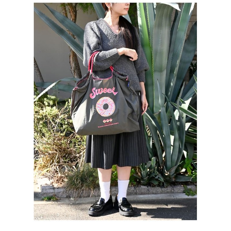 Ball & Chain 301131 Large Size SWEET Donut Sweet Charcoal Gray Shopping Bag Eco Bag (L, C.GRAY), C.GRAY