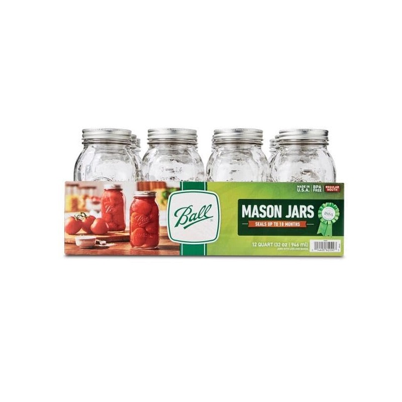 - Includes 12 pint-size (16 oz) and 12 quart-size (32 oz) Ball Regular Mouth Glass Mason Jars.