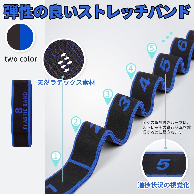 - Visualize Your Progress: By using a stretch band, anyone can easily stretch with the correct posture, and you can expect a quality workout just by incorporating it into your daily exercise. 35.4 inches (90 cm) long with 9 separate stretch loops, each individually numbered loop helps you check your stretching progress. In contrast to the buckle lace, the yoga leather strap is not necessary to stop and adjust the strap for different stretching. Recommended for beginners and those who want to challenge their poses never before