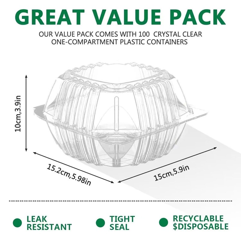 - Functional and Practical to Use: these clear clamshell food containers can reduce food contact with the air directly, prevent spoilage; They can help reduce food spills, making your guests feel cleaner. The plastic clamshell takeout trays are designed with hinged lock for seal, When you hear the snap,you will know that the take out container is tightly closed.