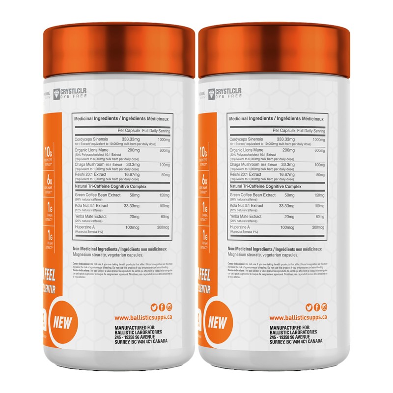 Ballistic Shroom Boom Capsules | Potent Nootropic Supplements | Natural Mushroom & Caffeine Complex with Lion’s Mane, Cordyceps, Chaga, Reishi | Increased Energy, Focus, Cognitive Performance | 90 Capsules (Pack of 2)