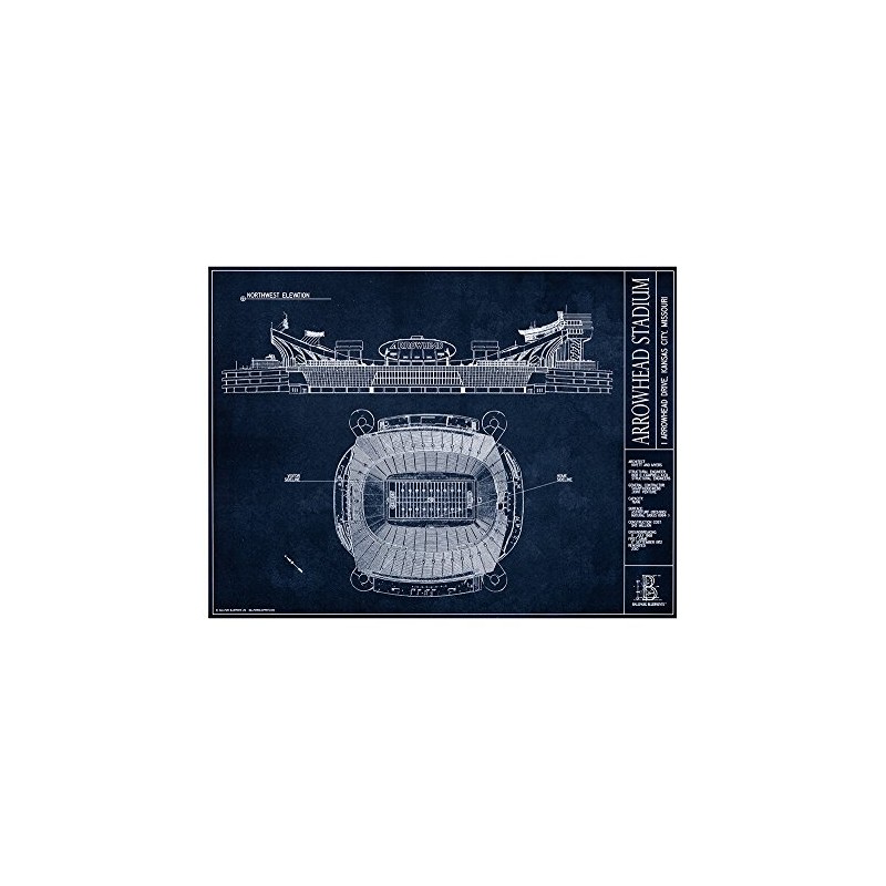 Arrowhead Stadium Blueprint Style Print (Unframed, 18" x 24")