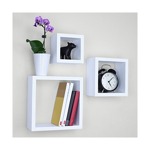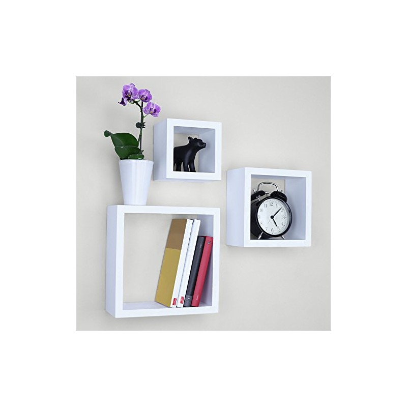 Ballucci Square Cube Floating Wall Shelf, Set of 3, White
