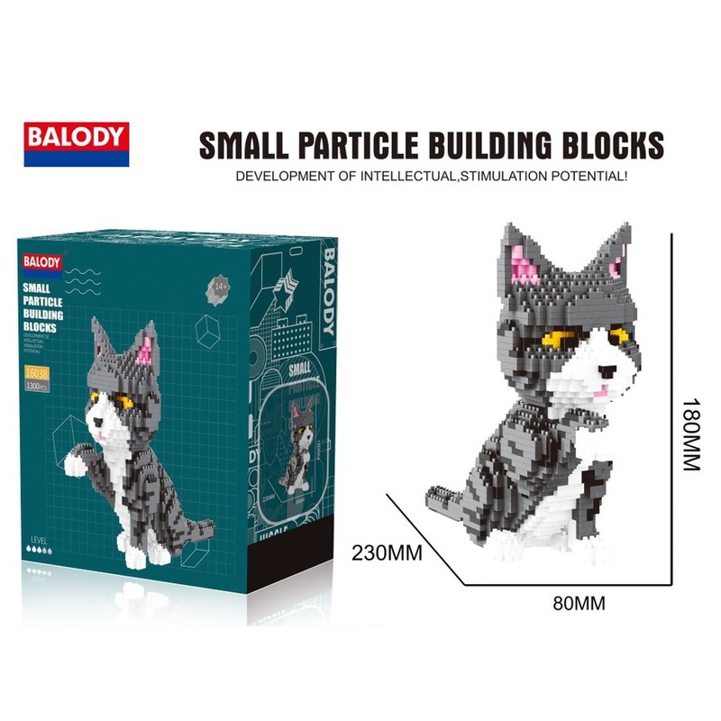Balody Cat giving the paw. Nanoblocks assembly kit. 1300 pieces