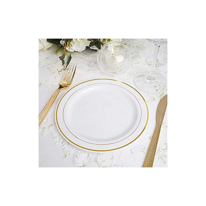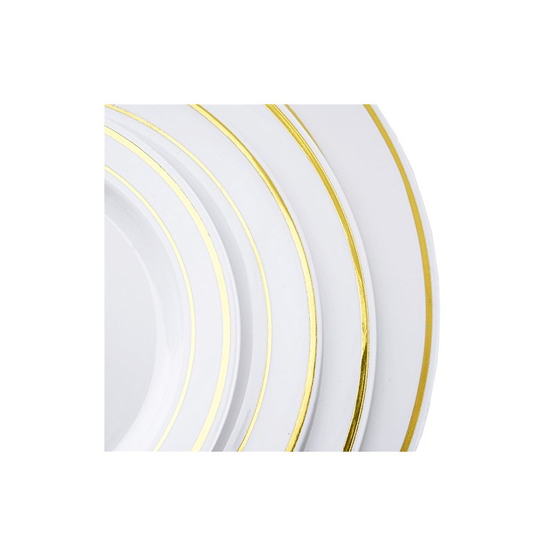 Balsa Circle 30 pcs 8-Inch White with Gold Trim Plastic Round Plates - Disposable Wedding Party Catering Tableware