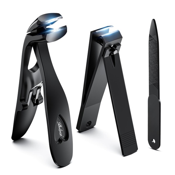 BALUCA Toenail Clippers for Thick Nails for Seniors, Straight Fingernail Clippers and Angled Head Large Toe Nail Clippers with Wide Opening Nail Cutter for Men & Women, Black