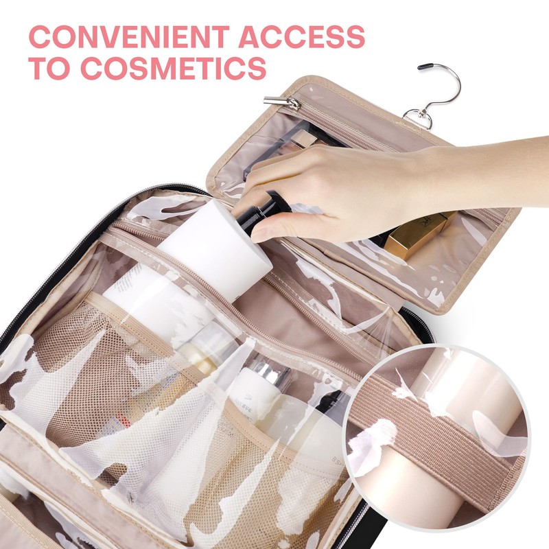 - 【Super Large Metal Hook】Toiletries Make-up Organizer Travel Bag built-in 1.68in diameter hook and 100 ° opening angle, you can easily hang on various edges and rods;The PP board with a thickness of 1mm is connected below the hook. The force is uniform, it is not easy to deform when the suspension, and it can withstand a larger weight.