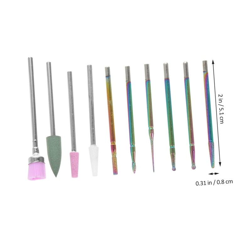 Baluue 10pc Nail Drill Bits Set Manicure Cuticle Remover Buffing Block for Acrylic Nails Safe Easy