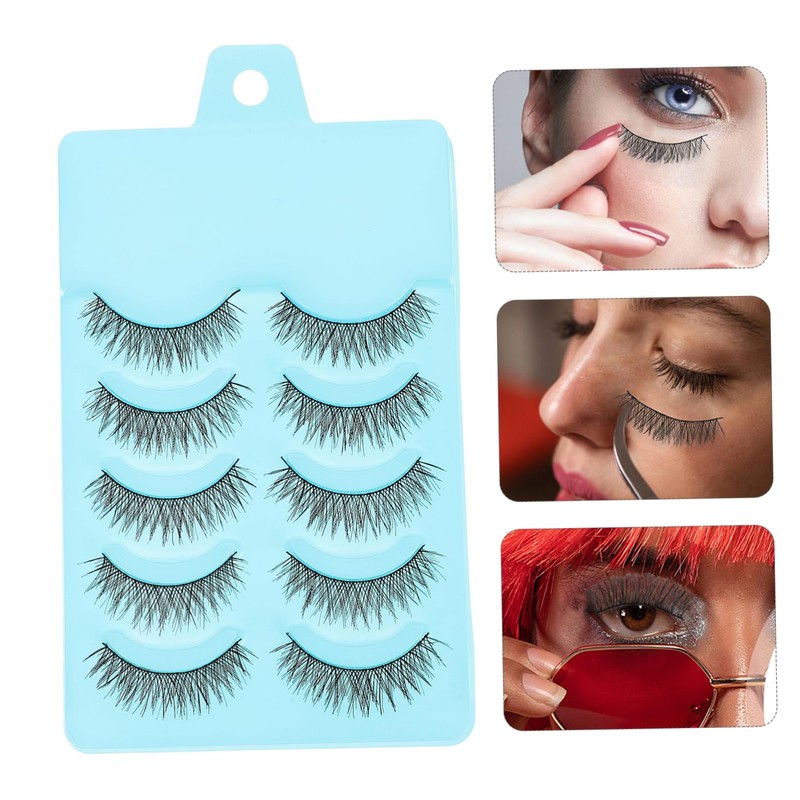 Baluue 5 Pairs Long False Eyelashes Natural Look Eyelashes Makeup Tools Cotton Stalk Eye Lashes Extension