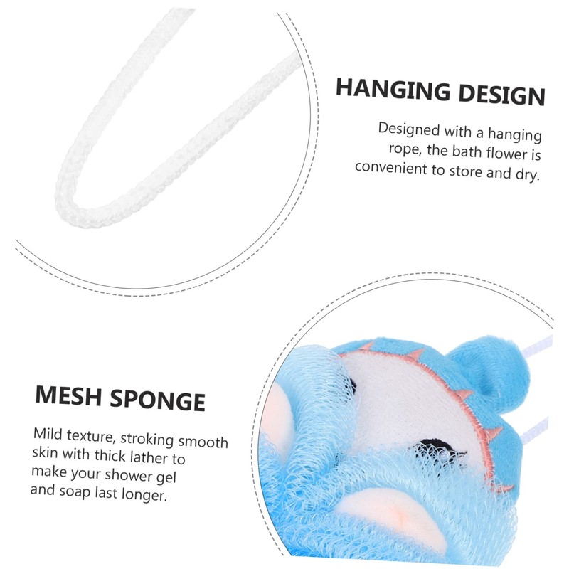 - Animal bath accessories:cartoon animals patterns, full of childishness designed with a hanging rope, the bath flower is convenient to store and dry,Shower Loofahs Balls