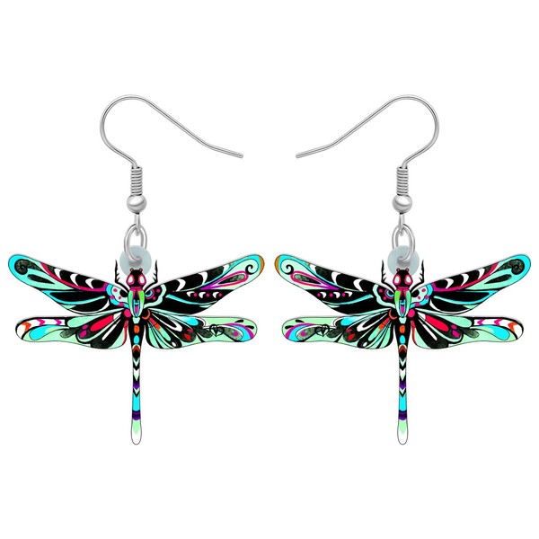 BAMAY Acrylic Dragonfly Earrings Insects Dangle Summer Jewelry Dragonfly Gifts for Women Girls Charms (Black)
