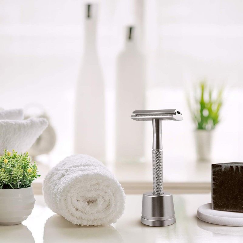 • Careful care of your safety razor - The upright storage of your razor makes drying easier. The shaving stand for men and women has a hole in the base that allows water to drain naturally and quickly.