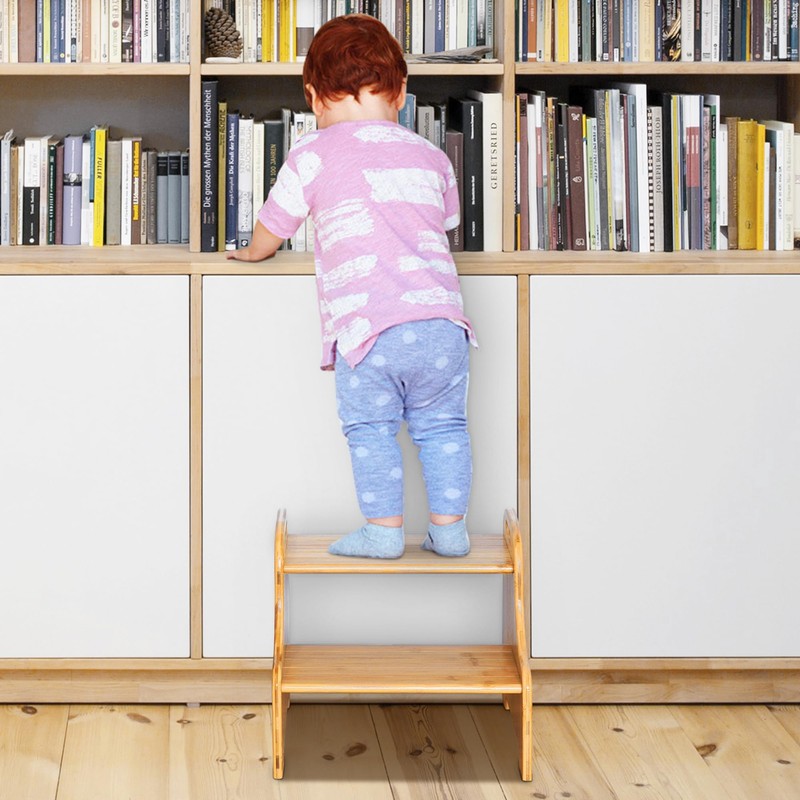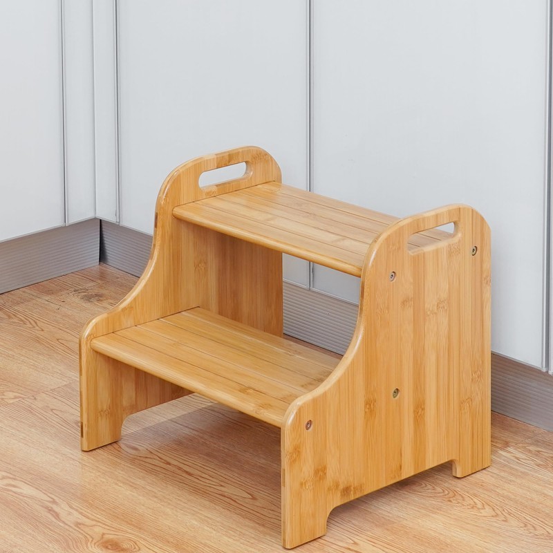 Bamboo 2 Step Stool with Non-Slip Step Treads and 2 Cutout Handles