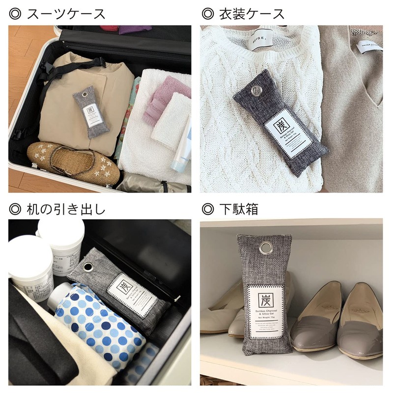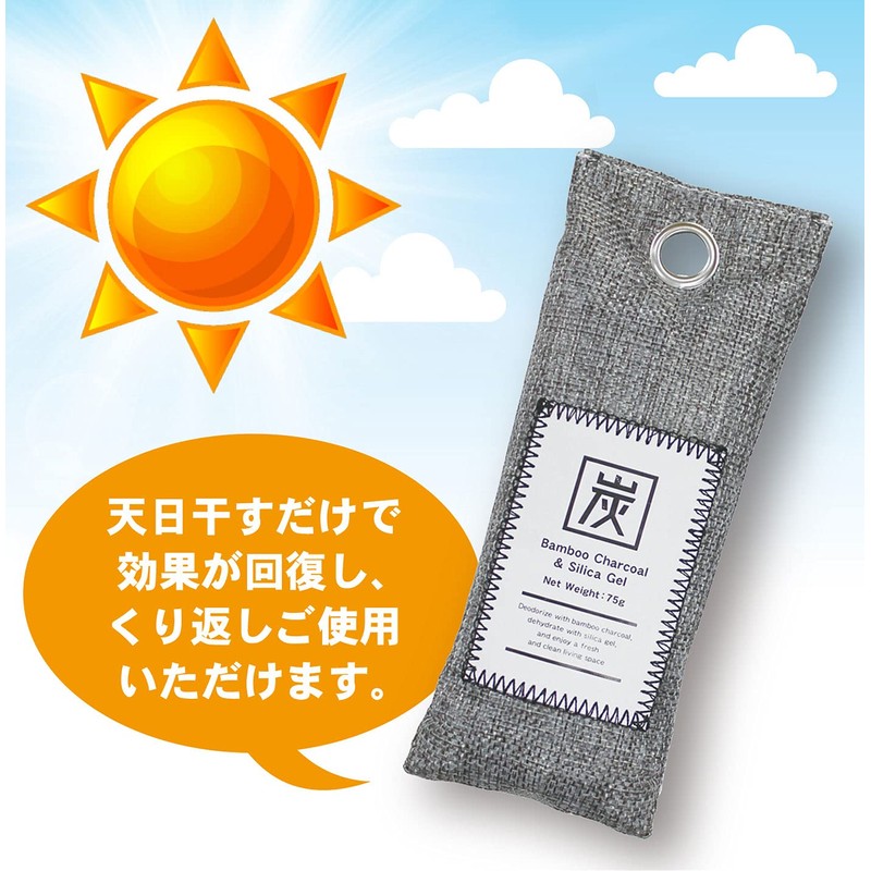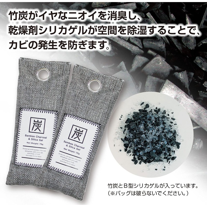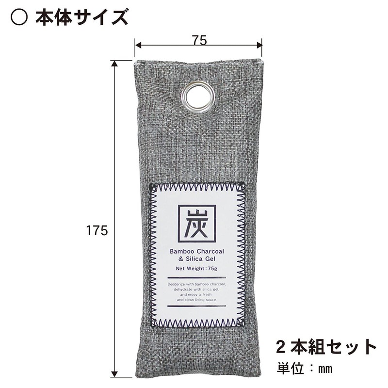 Bamboo Charcoal Dehumidifying Deodorizing Bag, Approx. 2.6 oz (75 g) x 2 Packs