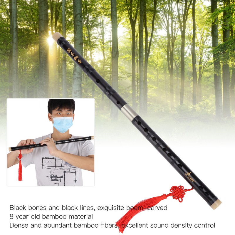 1、Black bones and black lines, exquisite poem-carved pipe wall, 8 year old bamboo material, dense and abundant bamboo fibers, bring excellent sound density control 2、Good pronunciation resonance, not easy to change the voice and crack, the longer the use time, the purer the sound quality 3、Double insert with cupronickel design, possess good anti-rust and sealing performance, prevent air leakage 4、The body of the flute is hand-tied with many fine nylon threads, the thread clusters are tight and firm, professional tuner repairs the holes many times to fix the tone, and the words and sentences are finely carved and the rhyme is leisurely 5、Reddish brown bring elegant and exquisite appearance. Suitable for beginners, performances, and examinations