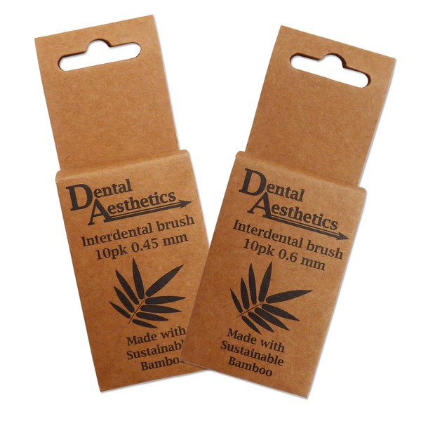 Bamboo Interdental Brushes 2 Packs ~ 10 Brushes Per Pack (Brown, 0.45 + 0.6)
