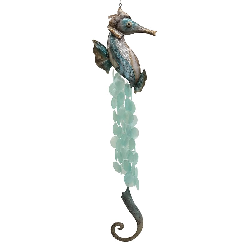 Bamboo Source Tropical Decor Capiz Shell and Metal Seahorse Wind Chime 2390 42 Inches x 10 Inches