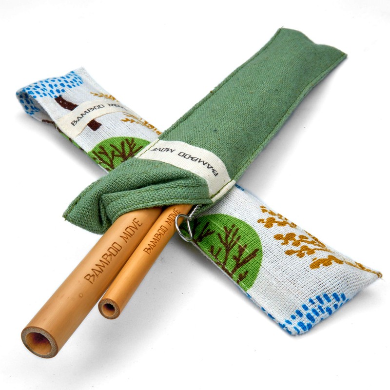 • Travel set with 2 bamboo move line straws and a cleaning brush in a fabric carry-on bag. The set includes 1 smoothie diameter straw (11 mm) and 1 thin diameter straw (7.5 mm). The breathable weave of the fabric allows the straws to dry on the go between each use. See product description below on this page for more information.