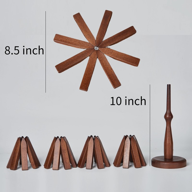- 【Product Specifications】The set includes 4 round trivets, each with a diameter of 8.2 inches and a thickness of 0.5 inches. When stored, the height of the small tree is 10.5 inches.