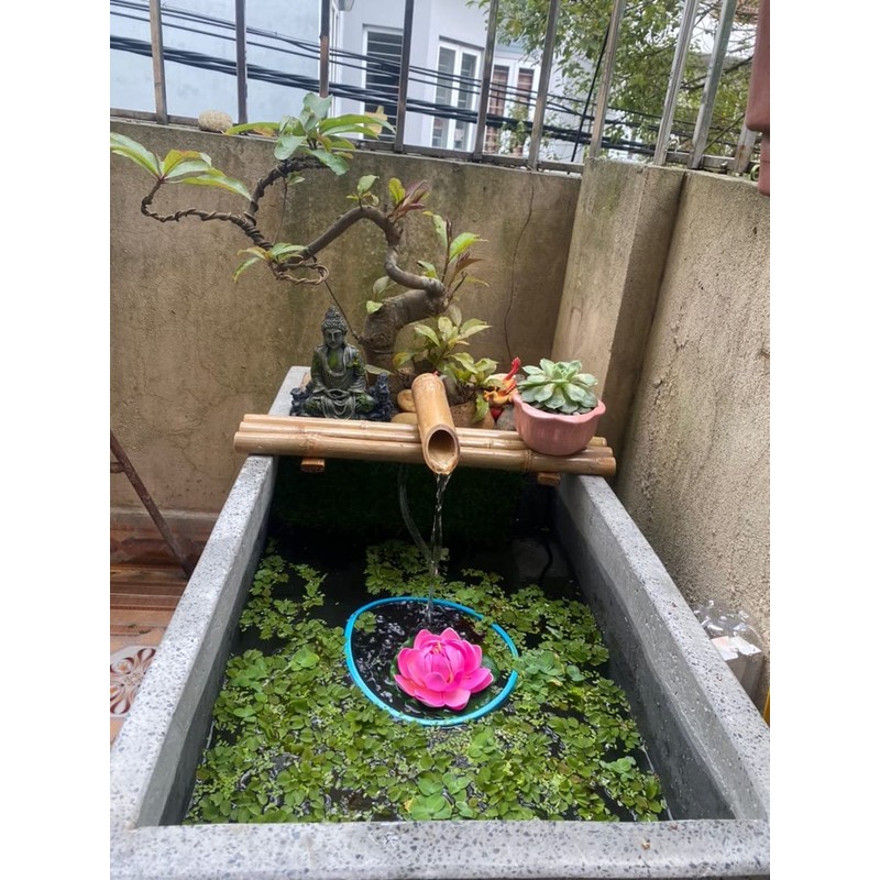 - Experience a sense of relaxation in just minutes with soothing sounds by setting up a bamboo fountain, submersible pump, and tubing on the rim of a container with a diameter ranging from 10 to 20 inches. The setup process takes as little as 5 minutes, and the fountain can fit into containers as shallow as 4 inches deep. If you opt for a deeper container, you could even add plants or small goldfish to enhance the overall aesthetic.