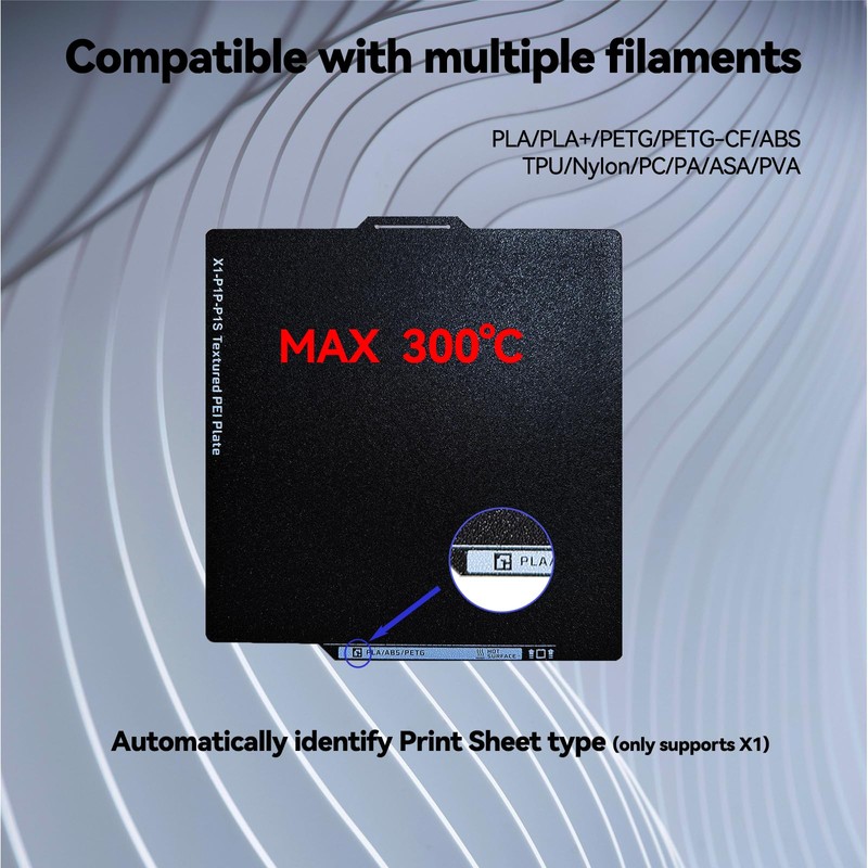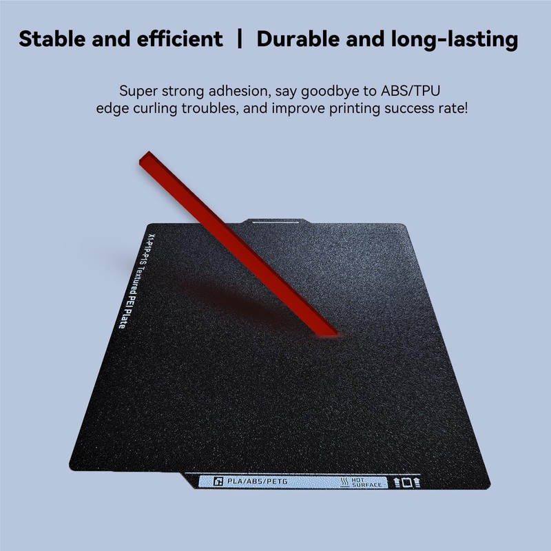 - (High-Performance Dual-Sided PEI Coating) Matte dual-sided PEI coating withstands 300°C temperatures and repeated use. Textured surface enhances adhesion by 40% for ABS/PLA/PETG/CF filaments, eliminating glue or adhesives. Models release naturally after cooling.